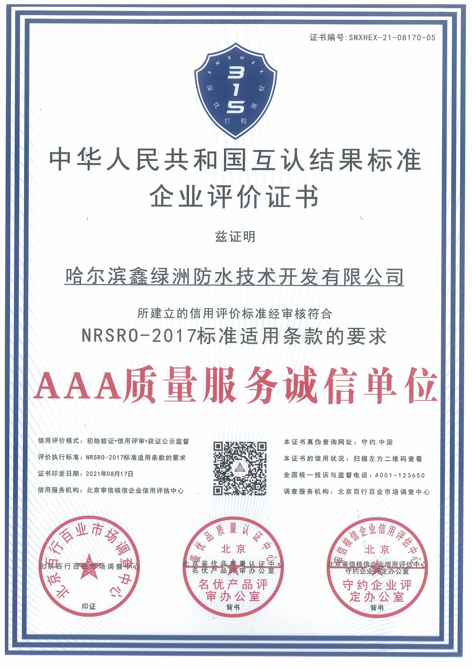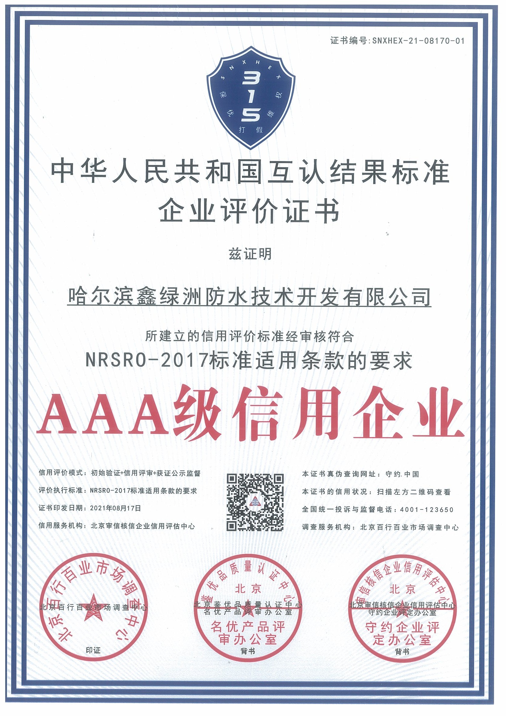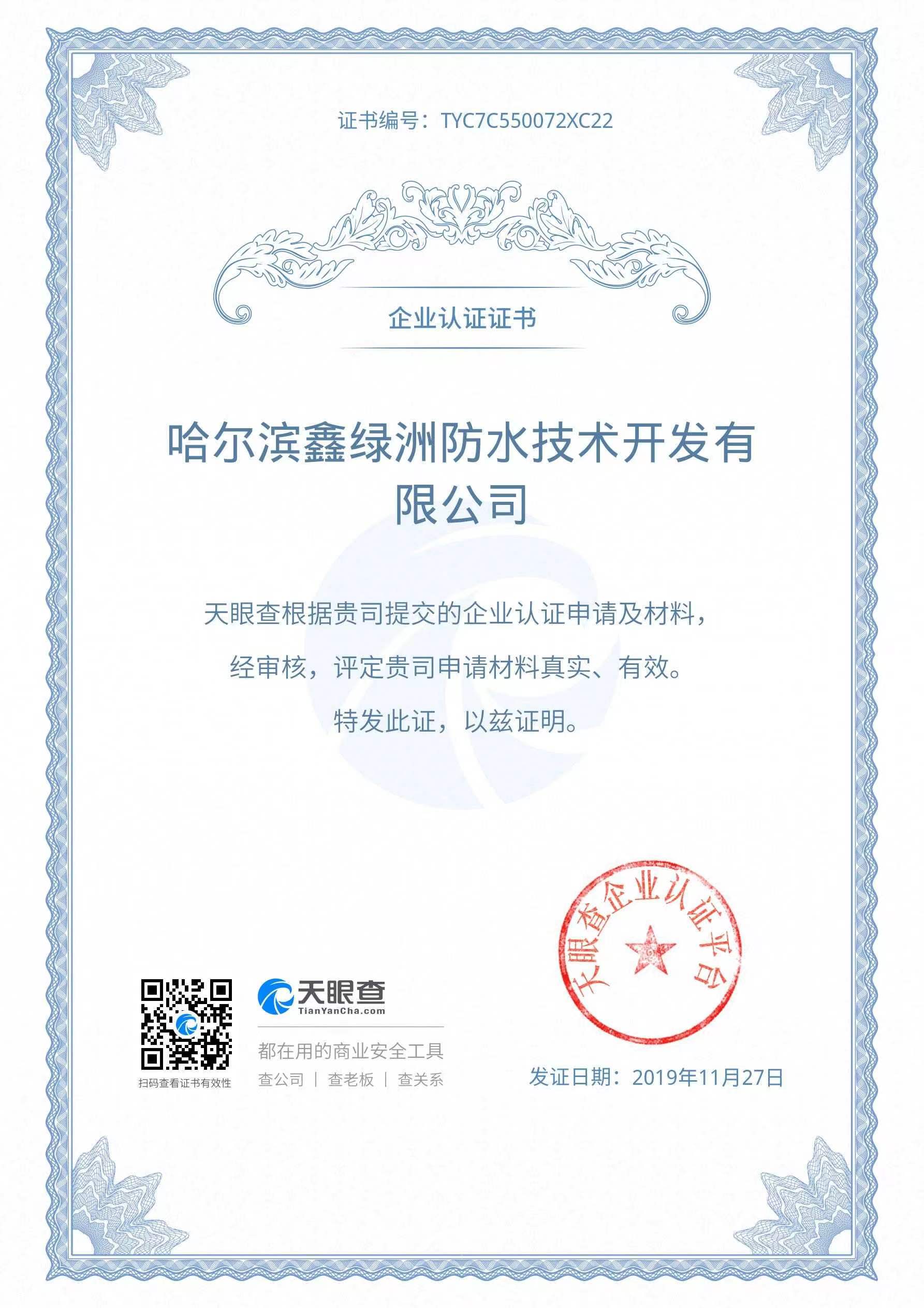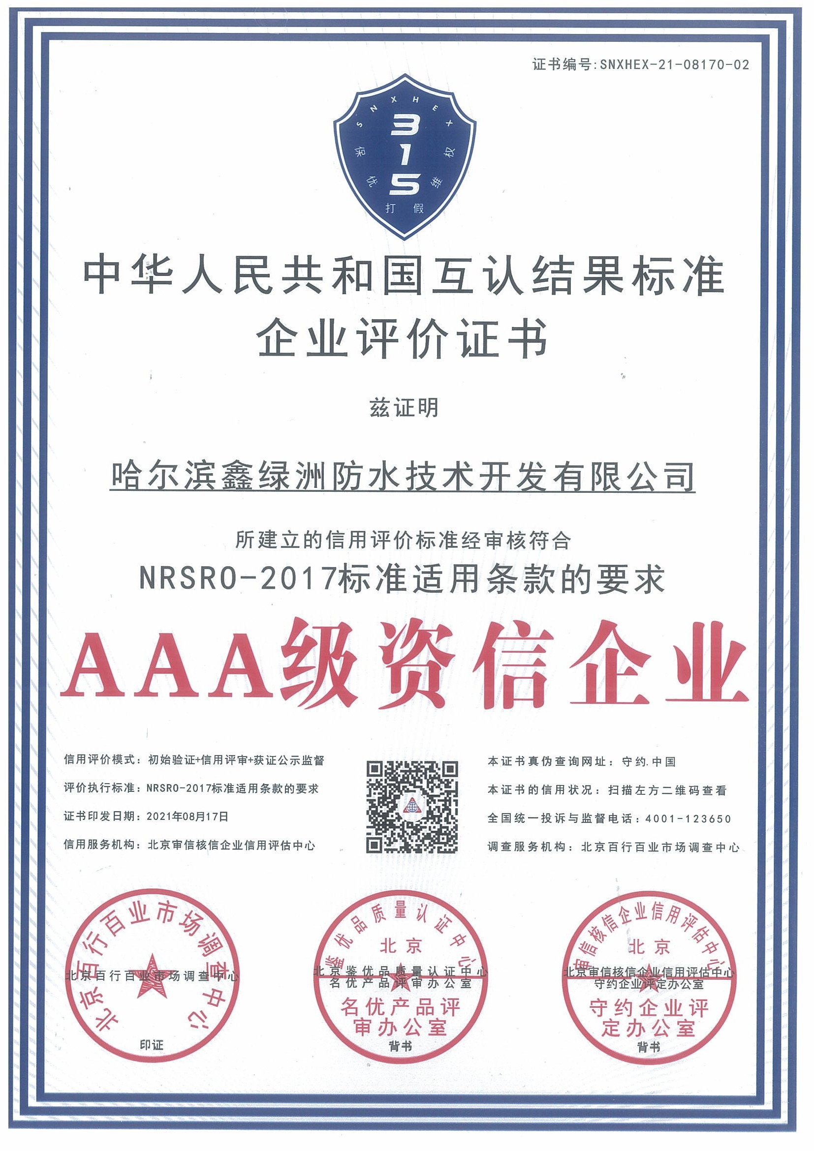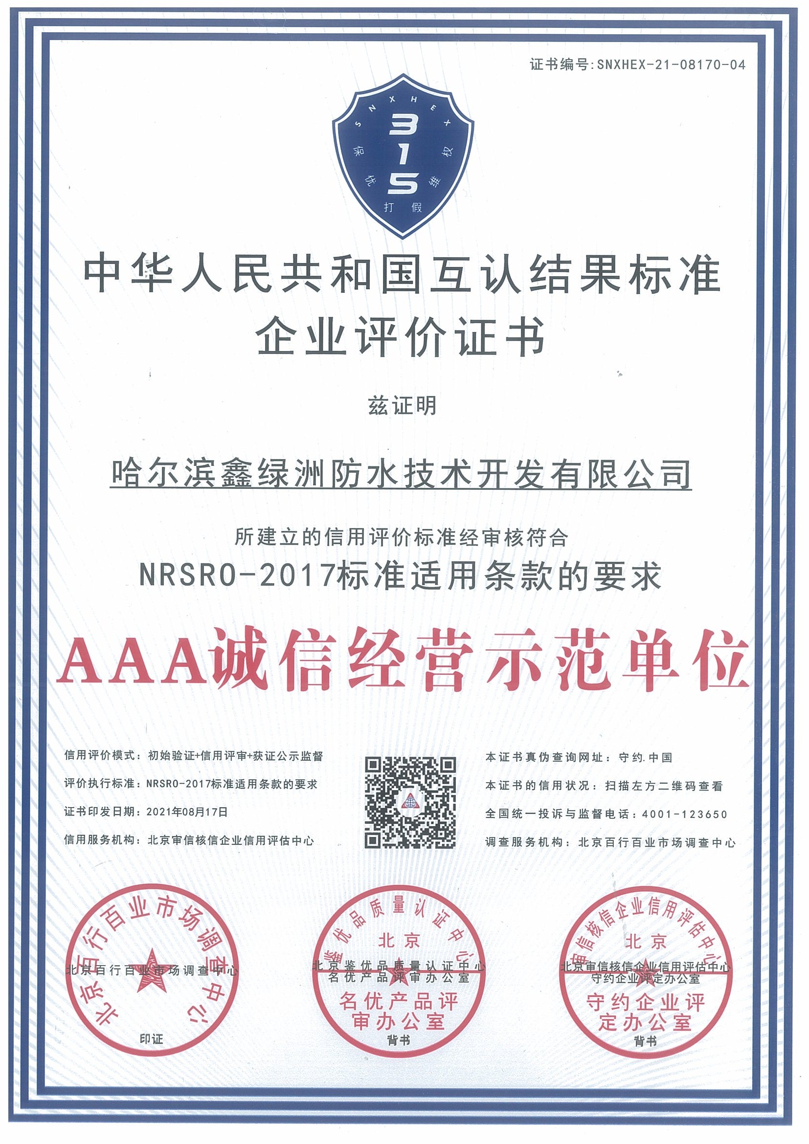 企業(yè)認(rèn)證證書(shū) 榮譽(yù)證書(shū)(2018-2023) 哈爾濱防水 哈爾濱防水公司